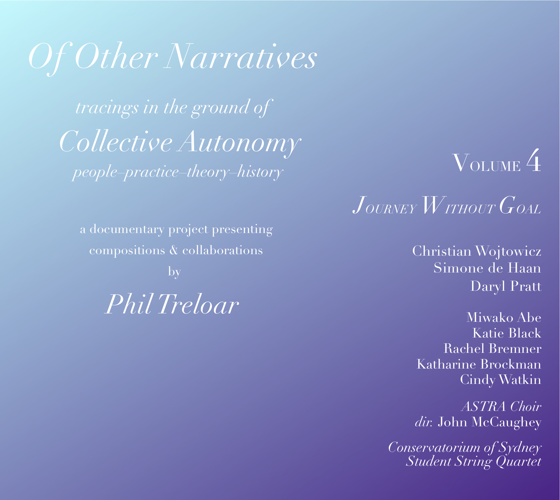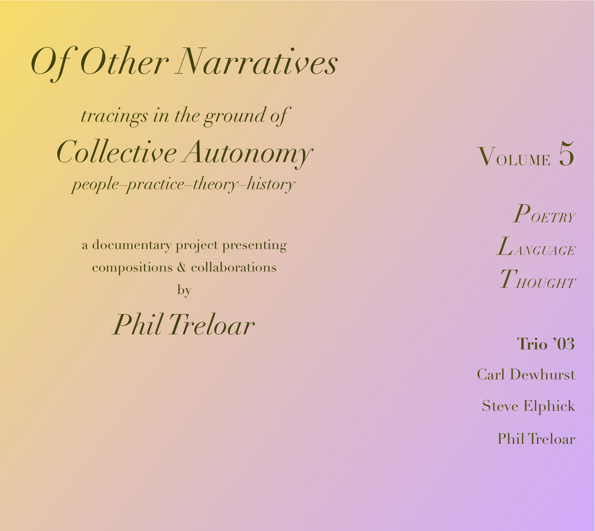 Though having floated round the eundergroundf since the time of its recording, this remarkable music is published here for the first time ever; a historically unique gem at the very forefront of an emerging, genuine and uncompromising Australian voice in improvised music.